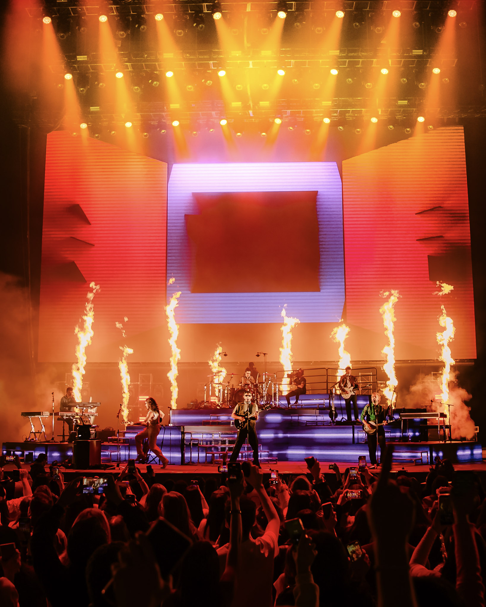 En esta primera parte del show la banda de pop rock comenzó a leer algunas pancartas e interactuaron con el público, una asistente que ganó la batalla al cáncer tenía su letrero y decía: “Vine a celebrar la vida, libre de cáncer” en ese momento pidieron un aplauso por ella y por su recuperación.